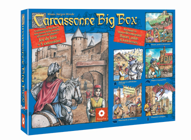 La Big Box de Carcassonne contient le jeu de base et 5 extensions thématiques.