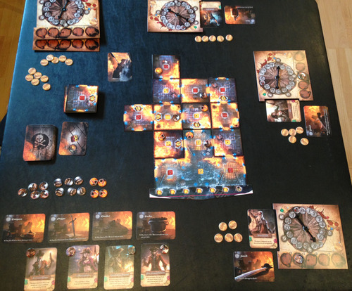 Jeu coopératif pour 2 à 5 joueurs qui utilise un système commun de points d'action et de fatigue commune qui déterminera ce que fait un joueur à son tour... mais ce n'est pas si simple ! Les joueurs peuvent aussi passer leurs actions à un partenaire pour optimiser leurs actions . Vous construirez le plateau en jouant, du coup aucune partie ne sera la même. Vous rencontrerez des ennemis et des gardes qu'il faudra défaire et trouverez des objets qui vous aideront dans vos quêtes tout en combattant le feu qui s'est déclaré à bord (piste de feu unique).
