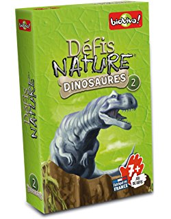 Avec Défis Nature Dinosaures 2, les joueurs parient sur les points forts de leurs dinosaures (poids, taille, dangerosité…). Le dinosaure le plus fort permet de remporter la carte des autres joueurs. Mais attention aux espèces ayant vécu le moins longtemps sur Terre… elles permettent de retourner la situation à tout moment !