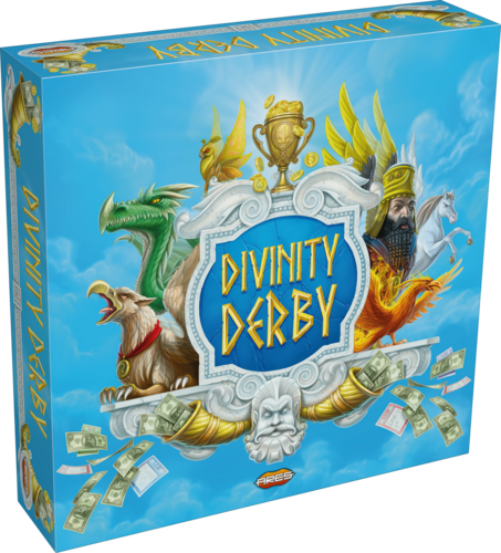 "Divinity Derby est un amusant et rapide jeu de paris et de course pour 3 à 6 joueurs, avec un mécanisme de carte de "main partagée" intelligent. Les joueurs, en tant qu'êtres divins pariant sur la course de six créatures volantes, partagent un détenteur de cartes avec chaque voisin, et à chaque tour ils jouent une carte de chaque détenteur.