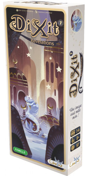 Dixit: Revelations vous invite à aller au-delà de ce que vous voyez au premier coup d'oeil et de découvrir ce qui se cache entre - ou caché par les lignes. Doté des illustrations de Marina Coudray, Dixit: Revelations ressemble à toute extension de Dixit qui a précédé avec ses images mystérieuses et enchanteresses. Coudray est fortement influencée par les mouvements du début du XXe siècle, de l'Art Déco au surréalisme, alors même que ces illustrations véhiculent des histoires et des idées qui peuvent être vieilles de plusieurs millénaires. Dans son art, vous trouverez des échos de Picasso, Magritte, Matisse, Escher, des mythe grec,de la religion indienne, la musique pop, des mèmes Internet, et beaucoup, beaucoup plus ... Dans ces pièces stylisées, rappelant l'architecture new yorkaise, et le verre Tiffany, vous trouverez de nombreuses allusions à d'anciens mythes et contes populaires.