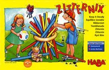 La couleur du dé indique quel bâtonnet il faut retirer du tas. Seul celui qui ne tremblera pas et aura de la chance avec le dé pourra collectionner les points. Un jeu d'adresse chancelant pour 2 à 4 joueurs. Les bâtonnets qui sont maintenus par l'anneau en bois sont de trois couleurs différentes.
