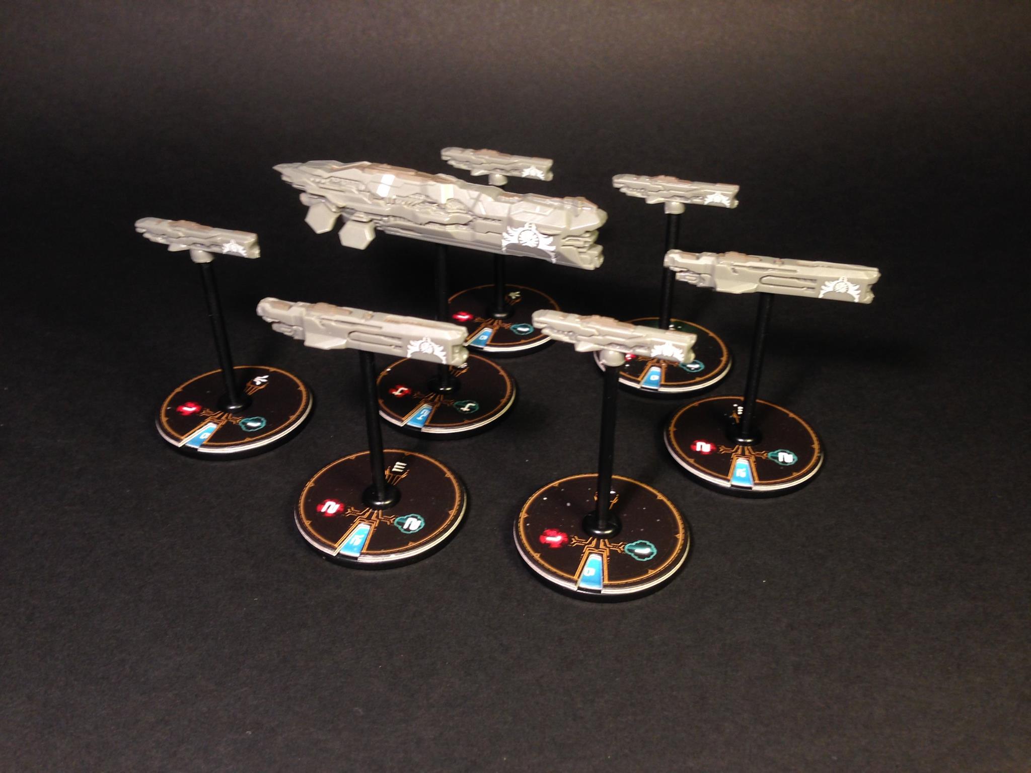 - 1 Cuirassé (le plus puissant de leur vaisseau qui possède une arme spéciale de leur choix parmi 6),