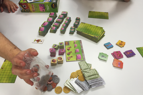 Happy pigs est un jeu familial, et si vous voulez un jeu léger d'achat/vente avec un peu du guessing, ça peut peut-être vous plaire. La difficulté d’émettre un jugement sur un jeu c'est parfois d'admettre que l'on n'est pas la cible. Cependant dans ce cas, je ne rechigne jamais à jouer à des jeux familiaux, au contraire même... Je joue à tout type de jeux (mais pas avec le même public). Happy pigs, je l'ai trouvé beaucoup trop répétitif, lassant : on fait la même chose toute la partie. De plus, il manque de folie et de second degré, avec un thème comme celui-là on aurait pu imaginer des tas de cartes événements plutôt drôles, et pourquoi pas, un peu plus de recul sur l'agriculture intensive (ça n'aurait pas été de refus pour ma part).