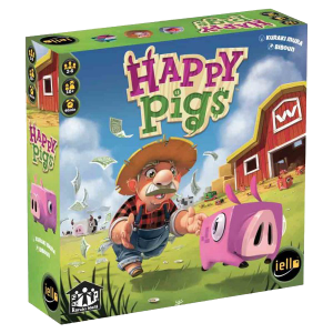 Happy Pigs est un jeu taïwanais conçu par Kuraki Mura (Wa Chat Bi… ) sorti initialement en 2013, et repris maintenant par Iello. Ils ont fait appel à Biboun pour