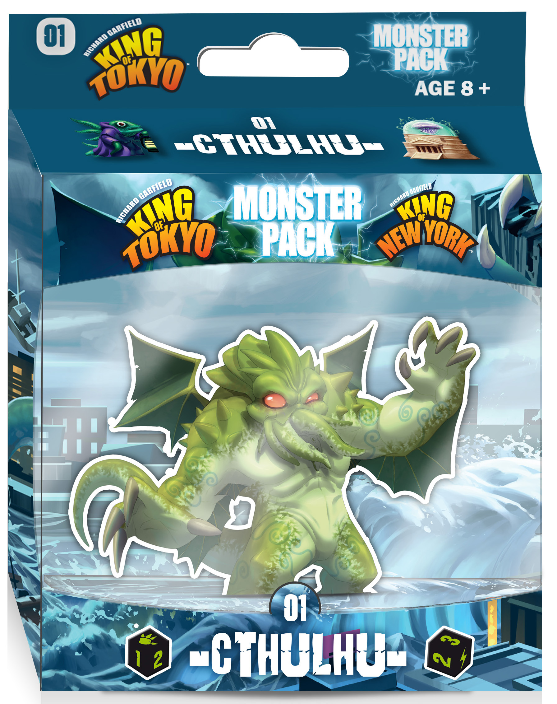 Contient un nouveau monstres, Cthulhu, ainsi que 8 cartes evolutions pour King of Tokyo et 8 pour King of New York. Contient egalement 15 tokens de cultistes