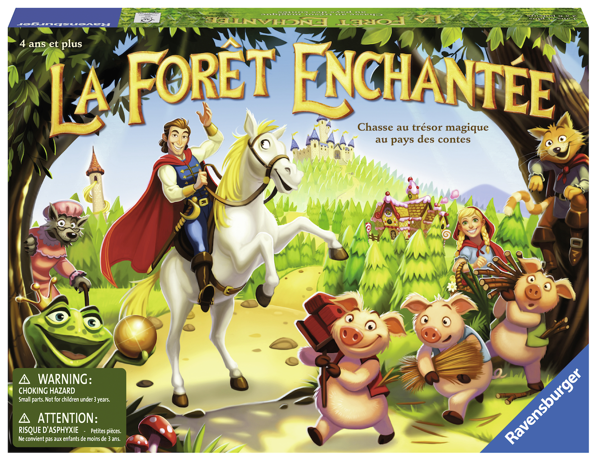 La pantoufle de verre de Cendrillon, les haricots magiques de Jack, la maison des trois petits cochons ou encore les bottes du Chat botté... tous ces objets sont cachés sous les arbres de la forêt enchantée. Profitez de votre ballade entre les arbres pour jeter un coup d'œil aux trésors qui s'y trouvent. Arriverez-vous à vous rappeler leur position ? Dès que le roi demande l'un des légendaire trésors, courez au château et révéler sa position. Le premier qui trouve 3 trésors remporte la partie.