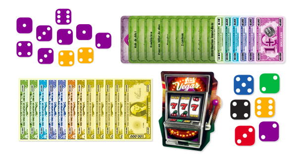 Dans cette extension, découvrez un florilège de nouveaux modules pour enrichir et pimenter vos parties de Las Vegas : de nouveaux billets de 100.000$ qui attiseront pour sûr les convoitises, des gros dés qui valent double lors du décompte des majorités, des cartes bonus qui augmentent la valeur de certains billets, de nouvelles actions et surtout un nouveau casino “La machine à sous” !
