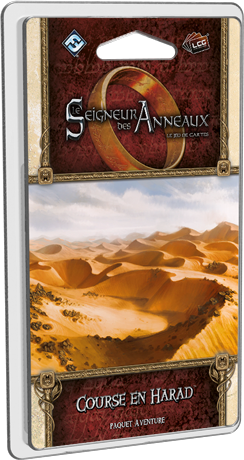 Course en Harad est un paquet Aventure de 60 cartes fixes pour l’extension Les Haradrim pour Le Seigneur des Anneaux : Le Jeu de Cartes. Ce deck propose de nouvelles cartes pour enrichir les decks existants ou en créer de nouveaux et offre aux joueurs un scénario original dans lequel leurs héros pourront s’aventurer.