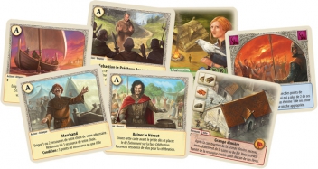 La clé de ce mélange, ce sont les pioches thématiques. En effet, lorsque les joueurs renouvellent leur main en fin de tour (ou font un échange), ils choisissent l’une des piles « génériques », la Guerre, le Progrès ou l’Or.