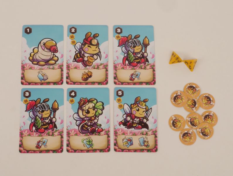 Les joueurs mettent en place 7 cartes d'abeilles secrètement et face cachée dans la zone de combat. Placez une carte abeille sur la zone de soutien. Les joueurs peuvent se référer à l'image suivante. Note : La Dame peut être placée dans la zone de jeu.