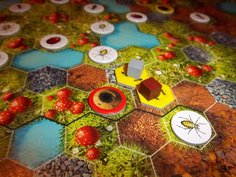 En plus d'un plateau commun où les fourmis ouvrières peuvent récolter et placer leurs phéromones, les joueurs disposent d'un plateau individuel représentant leur fourmilière souterraine.