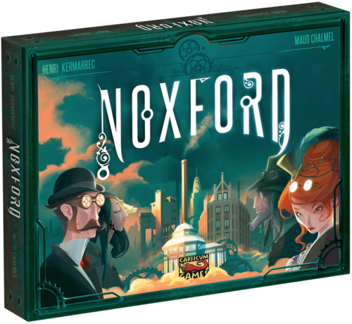 Noxford est un jeu de cartes de placement et de majorité qui a pour cadre une ville victorienne fantastique.