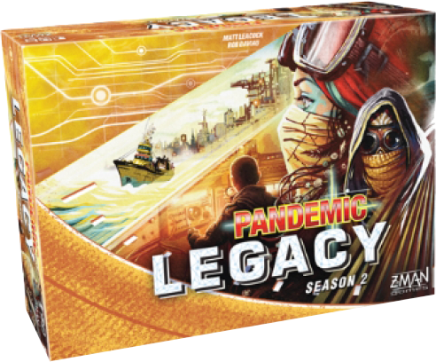 La saison 2 de pandemie legacy. Il existe deux boites, jaune et noire, mais le jeu est le même.