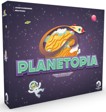 Planetopia est un jeu de construction de pont spatial où les joueurs incarnent chacun une planète et d'optimiser leur main pour atteindre les combinaisons les plus intéressantes pour gagner le jeu.