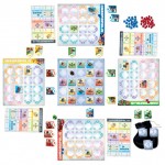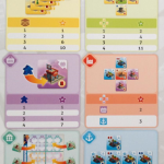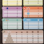 - 142 tuiles bâtiment, 1 plateau de chantier, 4 tableaux individuels et 4 aides de jeu, 20 architectes, 65 habitants (meeples bleus) et 50 barils d'énergie (barils rouges), 1 pion d'urbaniste et 1 pion de maire, 1 bloc de scores, 1 sac de tissu et 1 livret de règles.