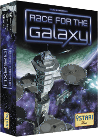Dans Race for the Galaxy, les joueurs bâtissent des civilisations galactiques grâce à des cartes représentant des mondes ou des développements technologiques et sociaux. Chaque tour est composé d’une à cinq phases. A chaque tour, les joueurs choisissent simultanément et secrètement une carte d’action parmi les sept dont chacun dispose, puis la révèlent. Seules les phases correspondant aux actions choisies par les joueurs ont lieu. Pour chaque phase ainsi choisie, l’ensemble des joueurs effectue l’action associée et le ou les joueur(s) ayant choisi la carte bénéficie(nt) d’un bonus.