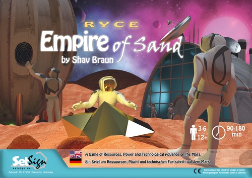 Ryce: Empire of Sand est un jeu de contrôle de zone et de gestion de ressources stratégique avec un fond thématique sur un plateau de jeu variable, des mécanismes interactifs, un faible temps d'arrêt, des éléments aléatoires faibles.