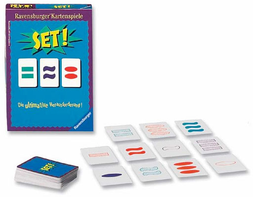 On mélange les 81 cartes puis on dépose 12 cartes (afin de former un rectangle 3 cartes x 4 cartes ) à découvert sur la Table. Ensuite, tous les participants (de 1 à bcq plus…) jouent en même temps. Le plus rapide à trouver un SET l’annonce en disant « SET » puis le montre aux autres joueurs.