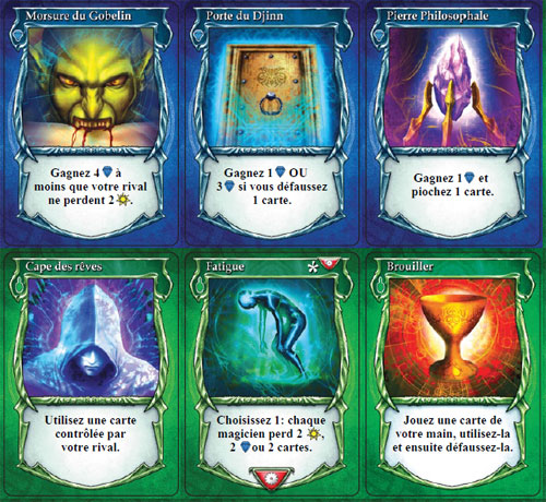 • Un magicien ne peut pas piocher de carte au début de son tour. Le magicien qui a le plus de saphir l’emporte. (En cas d’égalité, c’est celui qui a le plus d’énergie).