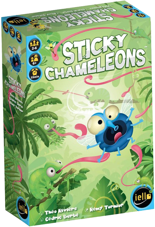 C'est l'heure du repas pour les caméléons ! Lancez les dés pour connaitre l'insecte à gober, et soyez rapide et précis pour être le premier à l'attraper avec votre langue (qui n'est autre qu'une… main collante !). Mais attention à ne pas emmêler votre langue, ou pire, tomber sur une vilaine Guêpe !