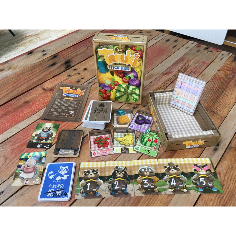 Tanuki Market est un jeu de collection avec un thème et des illustrations rafraîchissants. Le temps réel réduit les risques de temps d'attente trop important et donne au jeu un dynamisme accru. Son petit côté Stop ou Encore renforce la tension, puisque qu'il faut déterminer si on prend un chariot maintenant ou si on attend que celui-ci se charge un peu plus au risque d'avoir des fruits croqués ou des effets qui ne vont pas nous arranger. Il faut être vif et opportuniste.