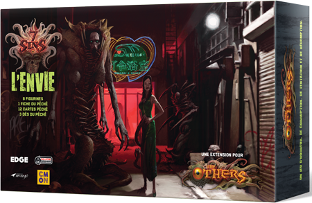 L’extension L’Envie ajoute un tout nouveau Péché dans vos parties de The Others, amenant de nouveaux défis pour les joueurs Héros et de nouvelles stratégies pour le joueur des Péchés. L’Envie arrive avec ses propres Monstres : un Contrôleur, 6 Abominations et le terrifiant Avatar du Péché ! Grâce à son Pouvoir et à ses cartes Péché, l’Envie offre une nouvelle dynamique de jeu à travers laquelle les Héros vont hésiter à acquérir de nouvelles Améliorations, par peur de rendre leurs coéquipiers fous de jalousie.