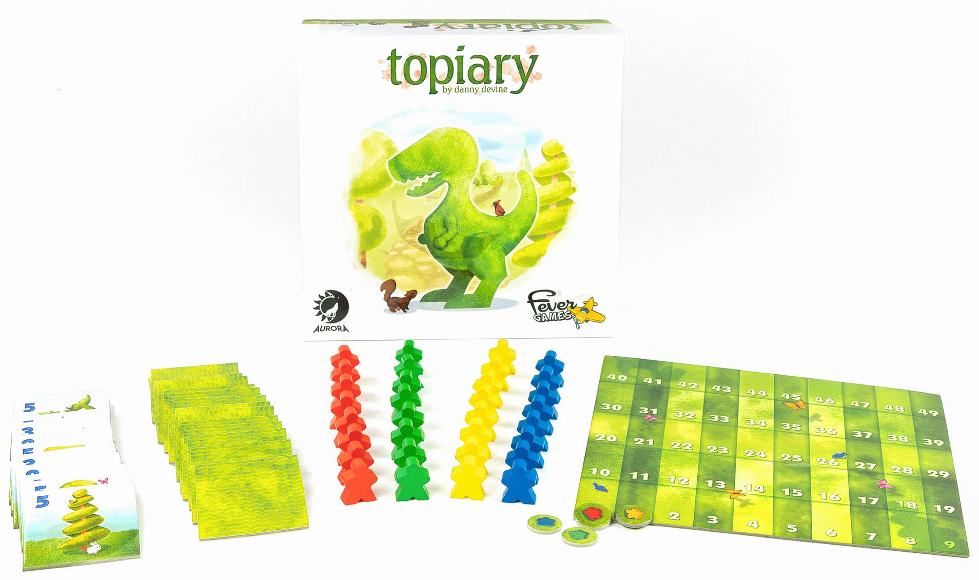 Les nombres sur les tuiles sont la valeur en point et la taille du Topiaire (plus la valeur est élevée, plus le topiaire est grand). Vous pouvez aussi recevoir des points bonus quand le même visiteur peut voir des topiaires de la même série, mais aussi pour les tuiles que vous avez en main à la fin de la partie.