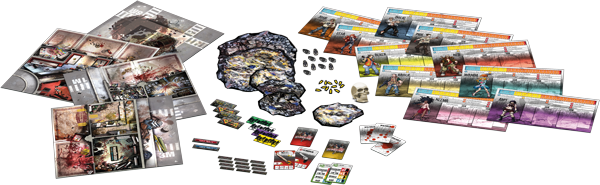 Mécanismes : Cartes personnages, Coopératif, Déplacement, Dés, Figurines