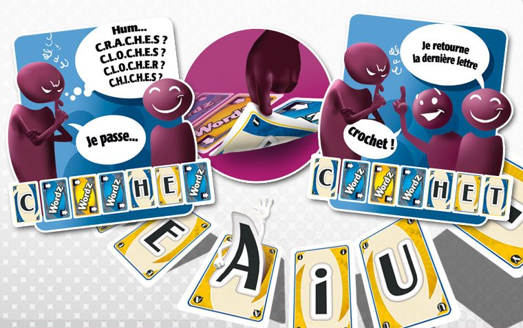 Composez secrètement votre mot, puis, en vous basant sur les lettres déjà dévoilées et le type (voyelles ou consonnes) de celles encore cachées, devinez avant les autres les mots posés par vos adversaires.