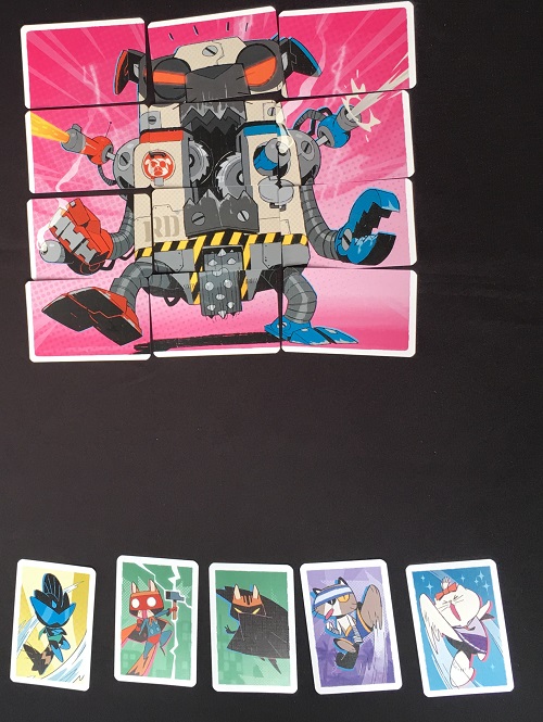 Dès qu’un joueur a activé tous ses chats, on passe à la manche II : il devient le “héros” et les autres jouent le robot-chien qu’il faudra vaincre.