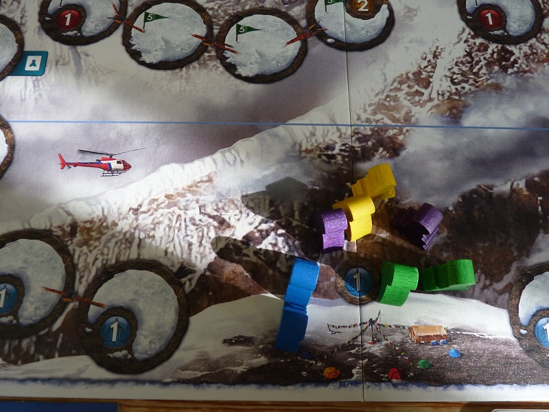 Ce mode de jeu me semble plus intéressant, car il donne beaucoup plus de liberté aux joueurs. Le plateau propose deux véritables voies différentes à partir du camp de base, ce qui évitera probablement des embouteillages vers les trois sommets (même si, rassurez-vous, il y faudra toujours jouer des coudes pour s’assurer les meilleures places).