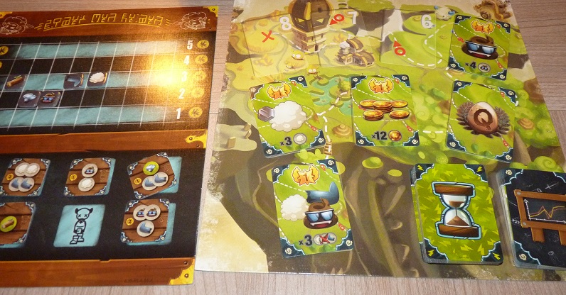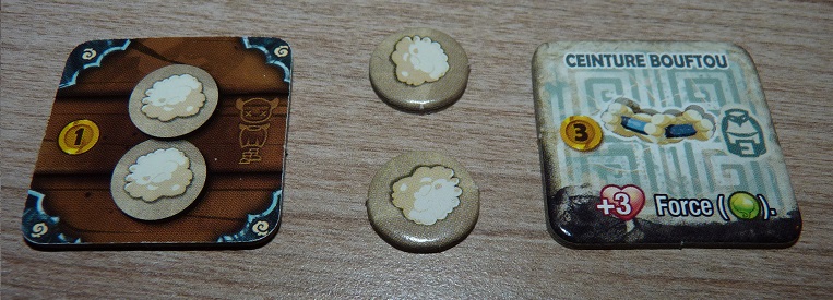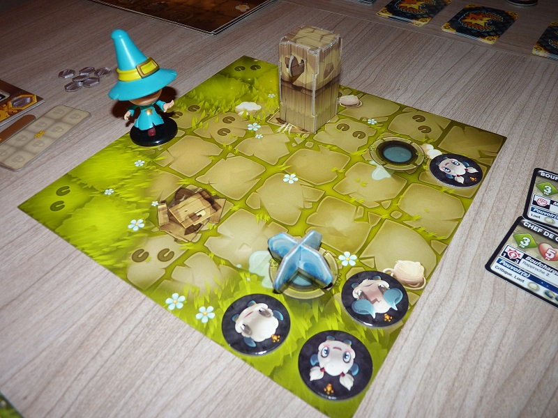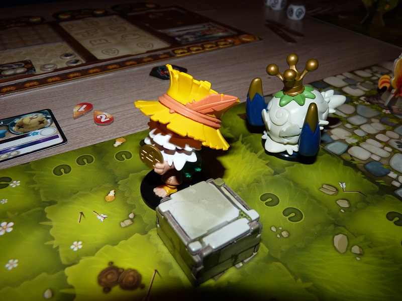 Mis à part ce petit défaut, il faut se rendre à l’évidence : le matériel a la classe lorsqu’il est disposé sur la table, et invite irrésistiblement le joueur à prendre part à l’aventure. Les éléments en carton, variés et en grand nombre, donnent du relief au plateau de jeu, ce qui permet une bonne lisibilité de l’ensemble. Cependant, les monstres sont représentés par de simples jetons qui se perdent un peu dans les décors. On aurait préféré des stand-up cartonnés qui auraient permis de plus facilement les identifier, d’autant plus que pour le noob, il est difficile de faire la différence entre les espèces de tofus et de bouftous !