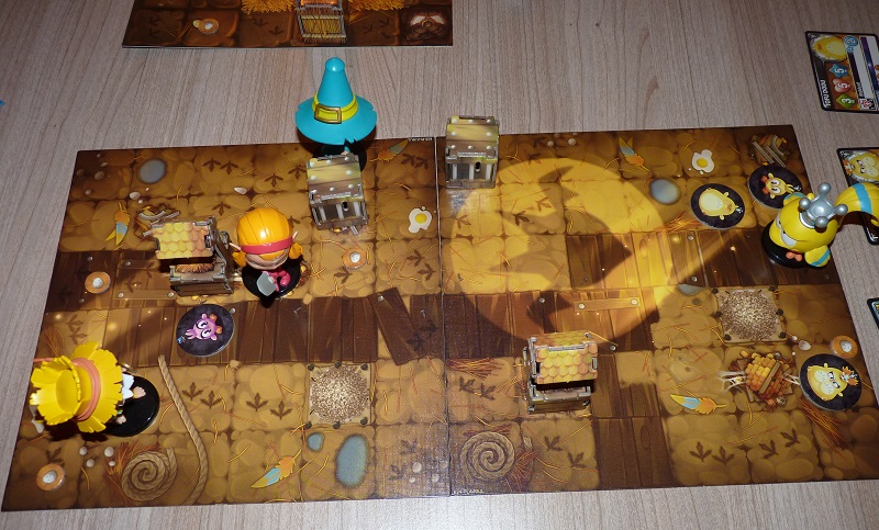 Puis, par initiative décroissante, on place une tuile correspondant au type de monstres avec lesquels on aura décidé de jouer (tofus, bouftous, ou les deux), ainsi que des filons de minerai, des arbres, et autres joyeusetés. Il n’y a pas à dire, décidément le matériel donne envie de se lancer dans l’aventure !