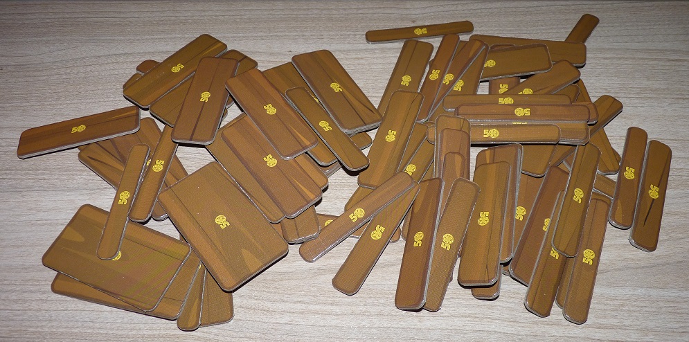 Par ailleurs, le nombre de jetons et de pions servant à représenter les ressources et marqueurs est exagérément important. Il oblige à d’incessantes manipulations et les personnes à grandes mains vont se tirer les cheveux devant la petite taille de ces éléments. Heureusement, et c’est la grande classe, l’éditeur a prévu deux coffrets de rangement afin d’éviter de se perdre devant la quantité de pions.