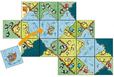 Par ailleurs, tous les enclos fermés qui touchent par au moins un côté une tuile étang lui aussi fermé obtiennent un bonus d'un point par poisson dans cet étang.