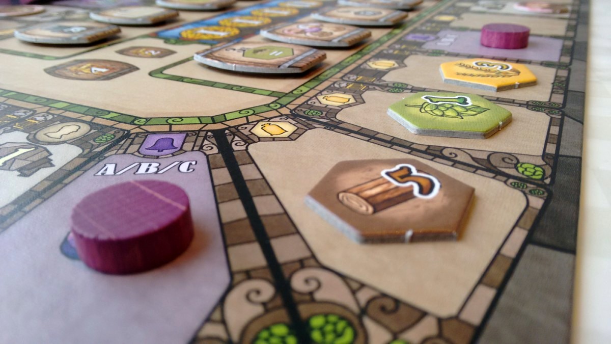 La zone de présence finale du pion maître brasseur préside à deux paramètres : un multiplicateur (entre 0 et 6), et un taux (X contre 1) qui permet d’échanger des ressources entre elles de manière plus ou moins avantageuse. Le but étant d’avancer au maximum le stock de la ressource la moins possédée, il arrive un moment où plus aucun échange n’est possible sans reculer une autre ressource en deçà de cette valeur. On fait alors le produit avec le fameux multiplicateur, pour obtenir un score de base.