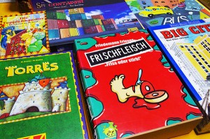 En arrivant sur les lieux, au huitième étage d’un bâtiment qui s’effrite, à bord d’un ascenseur sorti d’un film qui parle d’échafaud, on entre dans un magasin de jeux de société très bien achalandé. Une partie est consacrée uniquement aux jeux japonais, que les auteurs envoient par voie postale demandant gentiment de les vendre, une autre aux RPG, principalement japonais mais aussi américains, et enfin la plus grande partie est réservée aux jeux de société importés ou traduits. Avec quelques perles ludiques égarées au milieu des jeux CGE, FFG, Iello, Asmodée… Torres, l’ancienne version à la boîte toute égratignée, El Grande, essoufflé par toutes les parties que des centaines de joueurs de passage lui ont fait subir… et j’en oublie surement.