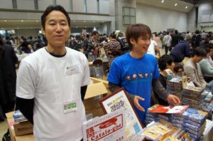 Deux des auteurs de Chaga Chaga Games, l’un des stands les plus attendus du salon : Stamp Graffiti, Money King, Catalogue… autant de petits jeux que les Japonais adorent. Cette fois-ci, ils ont pu répondre aux centaines de joueurs qui ont fait la queue devant leur stand.