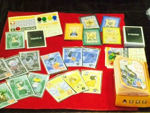 Une dernière petite chose… J’avais parlé il y a de cela quelques années déjà du défi des jeux à 500 yens que le Game Market avait organisé. Il en était sorti le très bon Sail to India, de Hisashi Hayashi, désormais édité par AEG et Iello. Cette fois-ci, un nouveau défi a été lancé aux auteurs. Il s’agissait pour eux de proposer des jeux sur carte postale. Oui, vous avez bien lu. D’après un blogueur japonais, qui présente de nombreux jeux sur Youtube, entre 50 et 60 jeux seraient sortis. Certains étaient distribués gratuitement à ceux qui les demandaient, d’autres étaient donnés avec l’achat d’un jeu… On y retrouve de très bonnes idées. Le loup-garou à un doigt, qui se joue jusqu’à 10 joueurs fait partie de ces bonnes idées, même si il y a quelques lignes, je vous ai dit que je n’en pouvais plus de voir des jeux de loup-garou. Ce genre d’entreprise un peu dingue fait du salon un événement unique en son genre. Et le plus amusant, c’est que presque tout le monde y participe ! Il y a une vraie volonté de faire plaisir aux joueurs dans ce type de démarche.