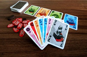 C’est là que le rapprochement avec 5 cornichons se fait, puisque la dernière carte que vous jouerez, si c’est la plus forte, vous obligera à ramasser toutes les cartes jouées se dernier tour.