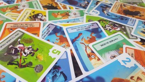 Les cartes ainsi gagnées seront posées devant vous. Dès qu’un joueur se retrouve avec 7 types de cartes différentes, la partie est terminée et celui ou celle qui aura le moins de cartes posées remportera la partie !