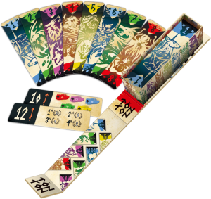 On s’est donc éloigné du thème original. Les jetons « shurikens » et autres armes silencieuses des ninjas étaient bien présentes dans cette première version, accompagnées de cartes mission à remplir, donnant un peu de répondant thématique au titre. Au final, ce dernier était malgré tout une simple couverture graphique puisqu’il s’agit avant tout d’un jeu de pli assez mécanique mais tout à fait original.