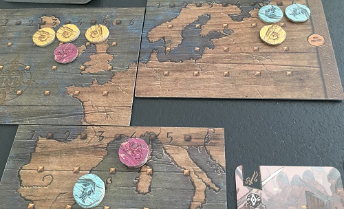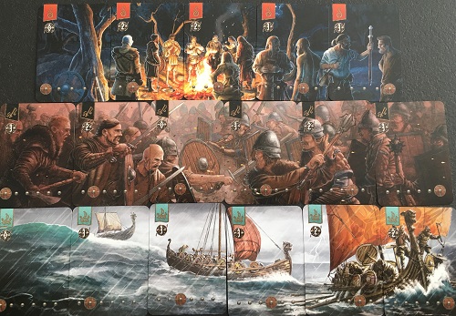 Concrètement, il s’agira de positionner ses vikings en majorité sur trois plateau pour se tailler la part du lion et récupérer des cartes qui nous intéressent. Ces cartes font partie de fresques, rapportant plus de points si elles sont contiguës, et elles peuvent également conférer des pouvoirs, ou encore vous permettre de valider des objectifs.