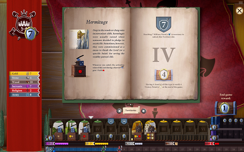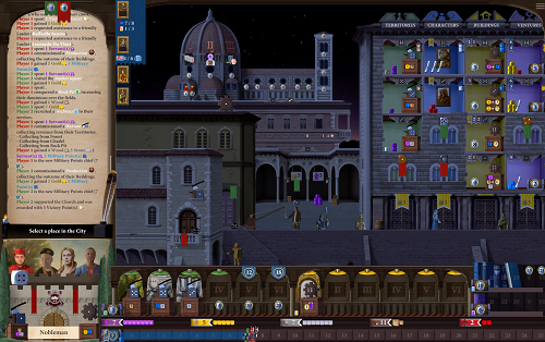 La manipulation de l’appli s’avère plutôt facile, à la longue, et on peut vérifier pas mal de choses grâce à des rappels graphiques bienvenus : petites bannières pour la foi, des artisans venant se rajouter près des portes des bâtiments de production, rappel des coûts supplémentaires sur les tours… Le job est fait.