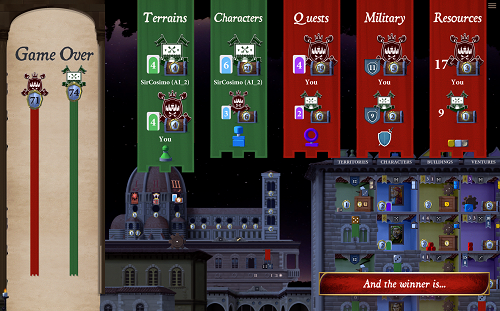 Le Studio Clangore porte ce Lorenzo il Magnifico sur Steam avec un certain degré de réussite, emmené par une excellente base il faut le dire. Pour autant, je ne suis pas convaincu de certains choix (graphiques/sonores), et l’expérience utilisateur, cahoteuse au début, peut en souffrir légèrement. Une fois les barrières franchies et la glace brisée, il n’en reste pas moins un excellent jeu duquel je me fais souvent une partie devant mon café avant de me mettre au labeur, un peu comme l’appli Ascension en son temps – et tout ça pour un jeu en accès anticipé dont l’amélioration de mise à jour en mise à jour est palpable. J’attends en tout cas la concurrence des joueurs humains de pied ferme ! À suivre sur la plateforme de Valve, donc…