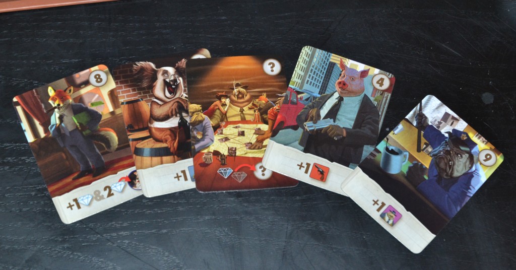 D’autant plus que l’on va pouvoir récupérer des cartes indics auprès de certains personnages. Ces cartes permettent, au moment de la résolution, d’ajouter quelques diamants sur le personnage. Grincement de dents garantis quand ces cartes sortent pour voler des majorités qui semblaient acquises.
