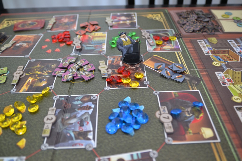 Concernant le jeu en lui-même, le concept est assez rapidement expliqué. On comprend vite ce qu’il faut faire, et comment y arriver. On a donc un démarrage de la partie plutôt rapide, et on se retrouve vite à tenter des entourloupes pour prendre l’avantage sur nos concurrents, à grand coup de corruption avec nos diamants. Cette mécanique d’égrenage est très agréable et fonctionne très bien, et surtout compense la malchance à ne pas avoir en main les personnages que l’on souhaiterait aller voir.