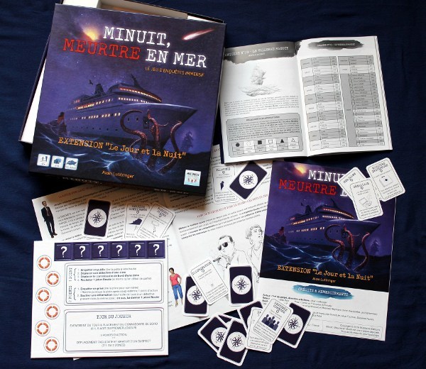 Toujours pour 2 à 6 détectives, cet opus se vante de raccourcir la durée des parties pour la faire passer sous l’heure. Une extension plus rapide à jouer que sa version originale? Comment est-ce possible? Vous le saurez en lisant cette revue de Minuit Meurtre en Mer, Le Jour et la Nuit !