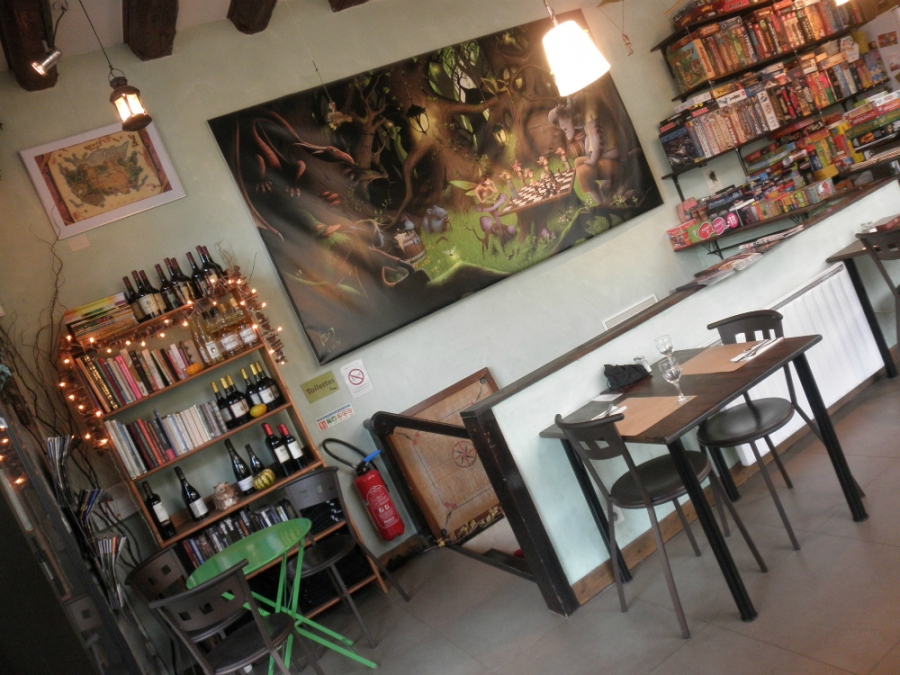 Tout d’abord, un café ludique, ou bar à jeux, qu’est-ce que donc qu’est-ce que quoi ? En fait tout est dans le nom : c’est un lieu dans lequel on peut se rendre pour jouer à des jeux de société et boire un coup. Le but principal du café ludique est de faire découvrir les jeux, plutôt que d’être un débit de boissons classique qui, en plus, propose quelques jeux.
